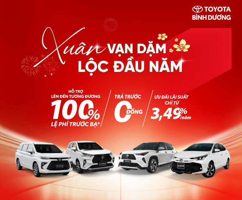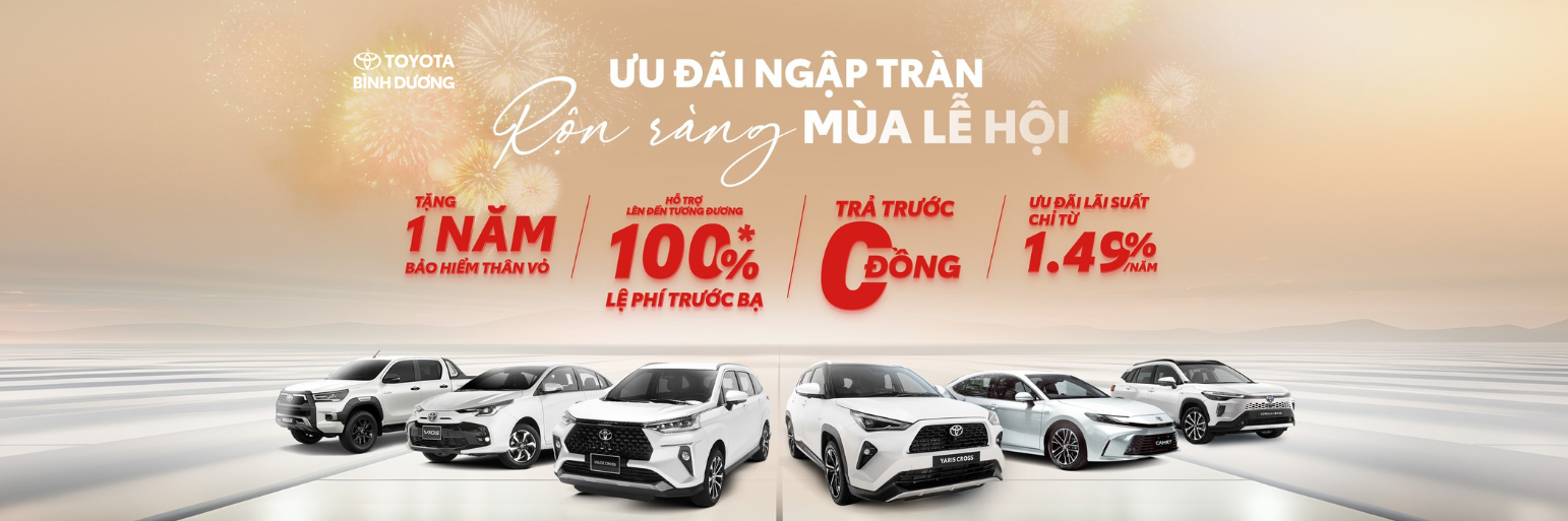 Toyota Bình Dương tổ chức chương trình sửa chữa lưu động trong các địa bàn thuộc khu vực Bình Dương như: Thủ Dầu Một, Bến Cát, Dầu Tiếng, Tân Uyên, Thuận An, Bàng Bàng, Bắc Tân Uyên,... ngoài giảm giá ưu đãi khách hàng còn có cơ hội tham gia bốc thăm trúng thưởng iphone 15pro và voucher trị giá 500.000đ