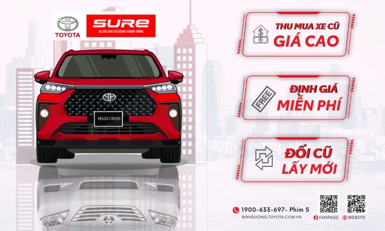 Toyota Sure giúp khách hàng yên tâm khi giao dịch mua bán xe cũ tại Toyota Bình Dương. Các khách hàng khi có nhu cầu bán xe cũ hoặc đổi xe cũ lấy xe Toyota mới có thể đến các đại lý để nhận được những ưu đãi khi đổi xe cũng như yên tâm về giá bán lại.